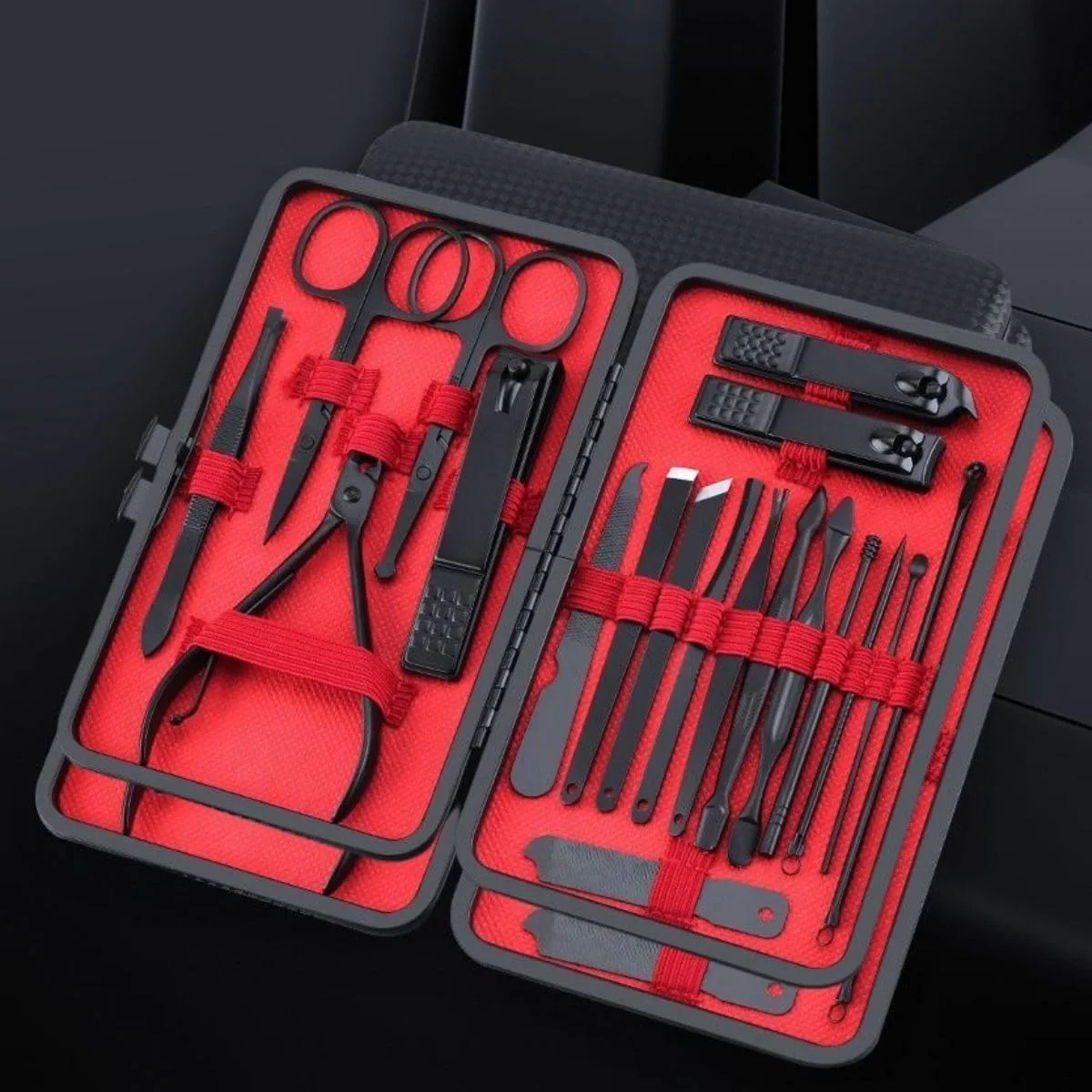 18 Parça Manikür Pedikür Set Kutusu Çelik Deri Çantalı Bakım Seti