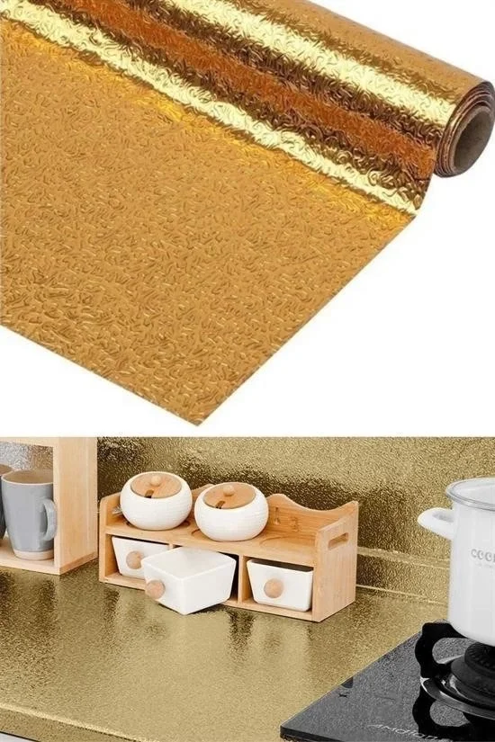 10 Metre Kendinden Yapışkanlı Silinebilir Mutfak Tezgah Üstü Sticker Folyo Gold Renk