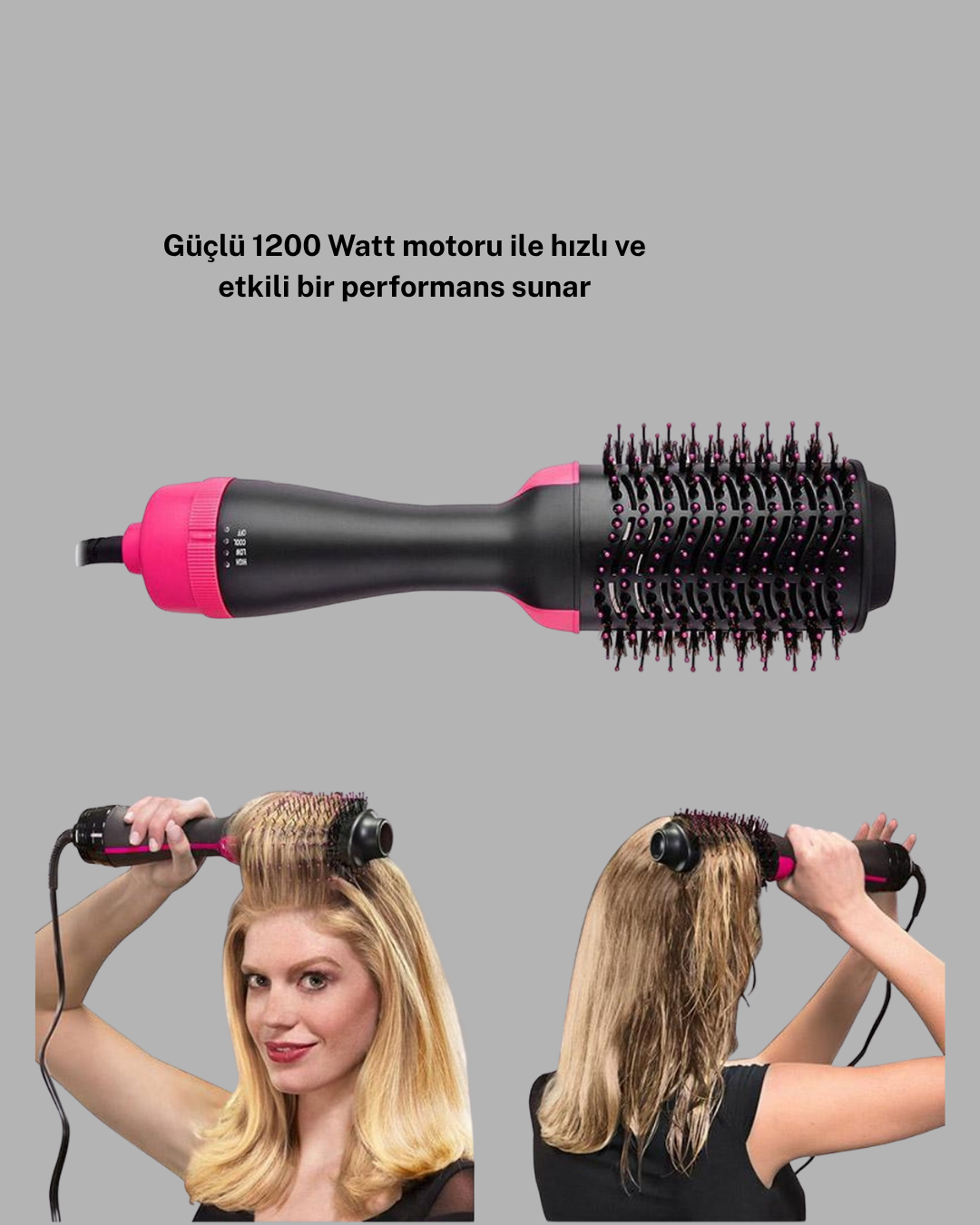 Saç şekillendirme artık kuaför konforunda!Bu 1200 Watt güçlü motorlu fön tarağı, maksimum 220°C ısı kapasitesi ile saçlarınızı hızlı, etkili ve zarif biçimde şekillendirmenizi sağlar.Üç farklı ısı ayarı sayesinde her saç tipine uygun kullanım mümkündür.İnce telli saçlarda nazik bir kurutma, kalın telli saçlarda ise güçlü hacim elde edebilirsiniz.Negatif iyon teknolojisi, elektriklenmeyi önler, saç tellerini yatıştırır ve parlaklık kazandırır.Bu sayede saçlarınız hem pürüzsüz hem de yumuşak bir görünüme kavuşur.Yıpranma karşıtı ısı dengeleme sistemi, saçları aşırı ısıdan korur ve sağlıklı görünümü destekler.Güçlü motoru, hava akımını eşit şekilde dağıtarak kısa sürede profesyonel sonuç almanızı sağlar.Ergonomik tasarımı ve 360° dönebilen kablosu, uzun süreli kullanımlarda bile konfor sunar.El yorgunluğunu önleyen hafif gövdesiyle günlük kullanım için idealdir.Günlük bakımınızda, özel davetlerde veya seyahatlerde saçlarınıza hızlıca şekil verin.Tek bir hareketle hacim, ışıltı ve pürüzsüzlüğü bir arada yakalayın!Modern teknoloji, güçlü performans ve zarif tasarım bu fön tarağında birleşti.Her an bakımlı görünmek artık çok kolay!