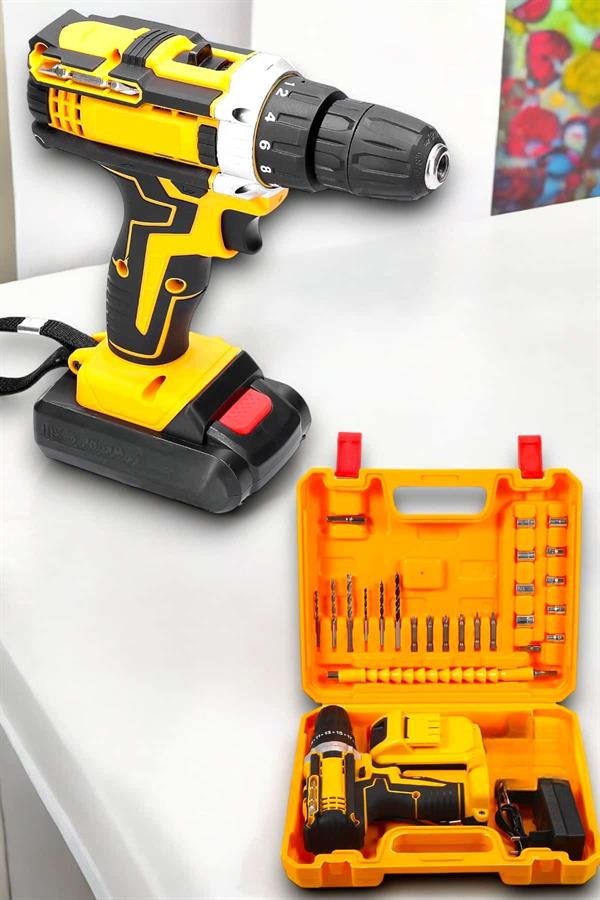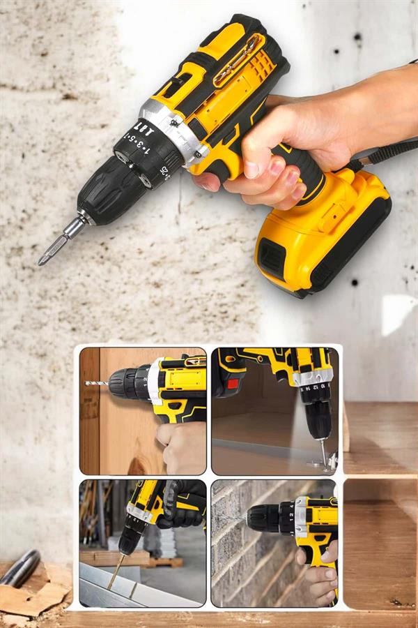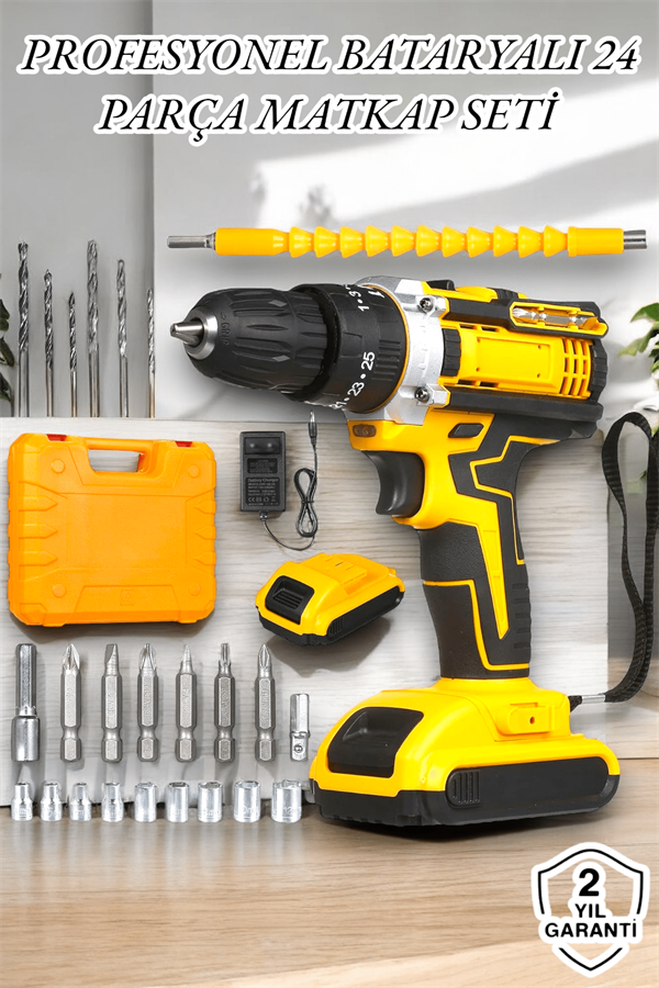 Çift Bataryalı Metal Dişli Darbeli Şarjlı Matkap Seti, güçlü motoru, geniş aksesuar çeşitliliği ve kullanıcı dostu özellikleriyle projelerinizi kolaylaştırıyor!• Güçlü 24W Motor: Metal dişli ve darbeli çalışma özelliğiyle en zorlu görevlerde bile üstün performans.• Zengin Aksesuar Seçenekleri:• Lokma uçları (6-13 mm), HSS metal delme uçları, ahşap delme uçları ve vidalama uçlarıyla çok yönlü kullanım.• Otomatik Mil Kilidi: Uç değişimlerini kolaylaştırır ve güvenli kullanım sağlar.• LED Çalışma Işığı: Karanlık alanlarda bile net çalışma imkanı.Evde, atölyede ya da profesyonel sahada kullanıma uygun bu matkap setiyle işlerinizi hızlı ve sorunsuz şekilde halledin!