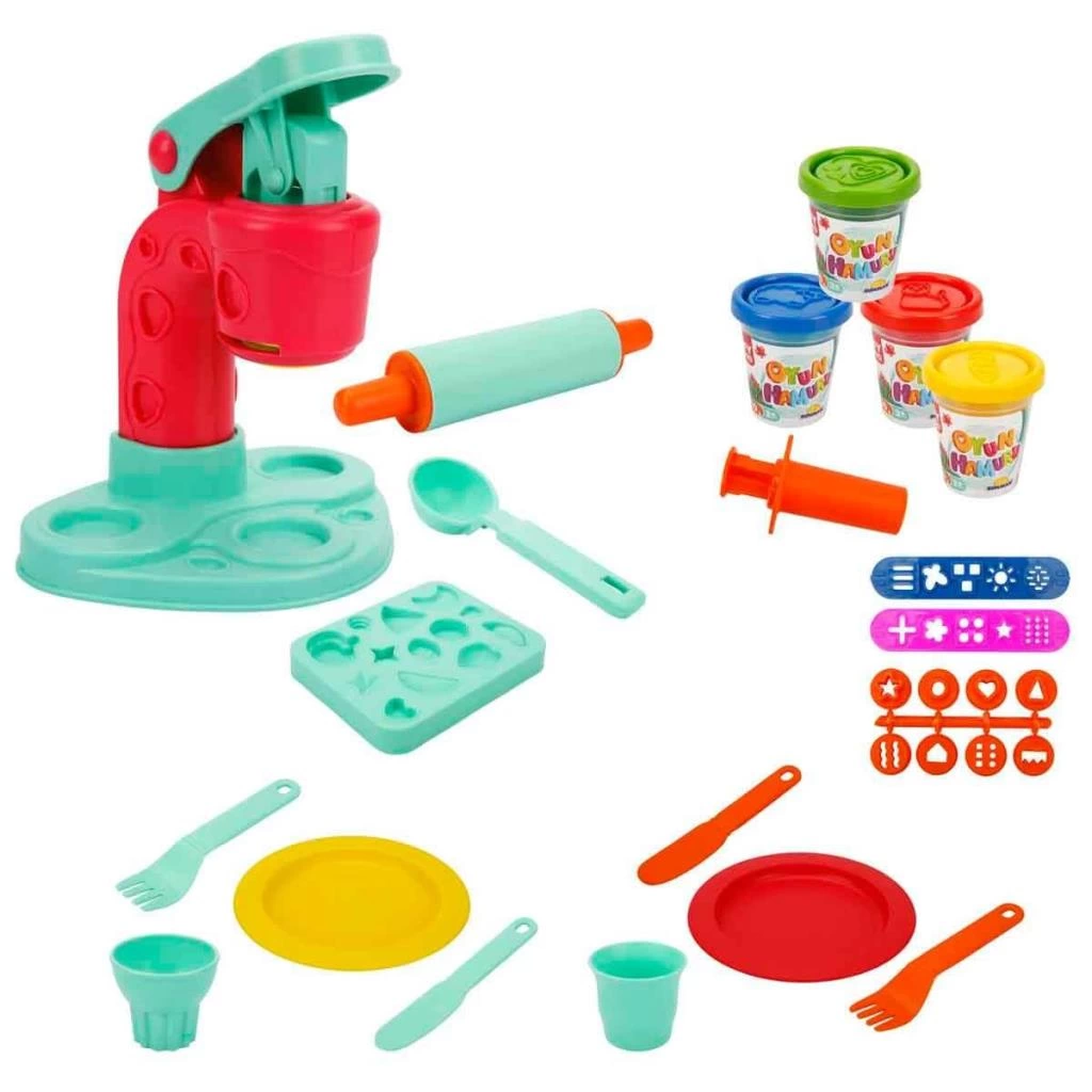 29 parçadan oluşan set içerisinde; her biri 50 gram olan 4 adet oyun hamuru, 1 adet dondurma makinesi, 3 adet külah, 2 adet çatal, 2 adet bıçak, 2 adet tabak, 1 adet merdane, 1 adet dondurma kaşığı ve hamurunuza farklı şekiller verebileceğiniz aksesuarlar bulunmaktadır. Aksesuar renkleri farklılık gösterebilir.