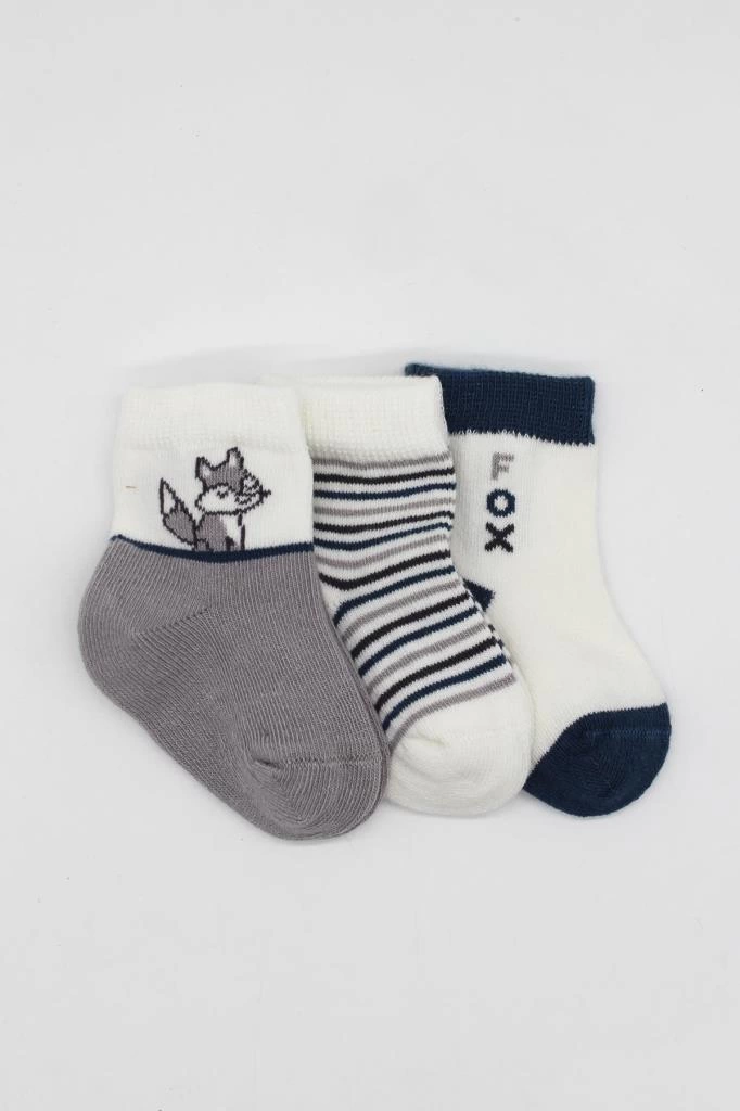 3’lü Penye Soket Çorap Gri Yumuşak Ve Rahat Günlük Çocuk Çorabı