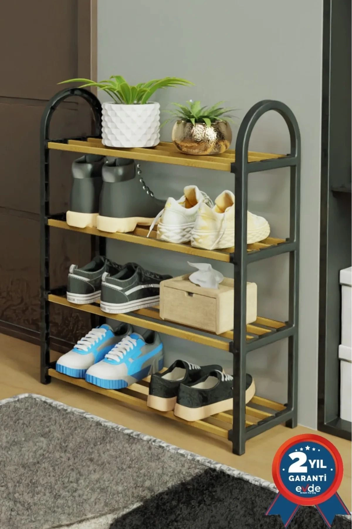 4 KATLI 1. SINIF 4 BÖLMELİ DÜZENLEYİCİ AHŞAP AYAKKABILIK 12 ÇİFT KAPASİTELİ RAF EV DEKOR MOBİLYA