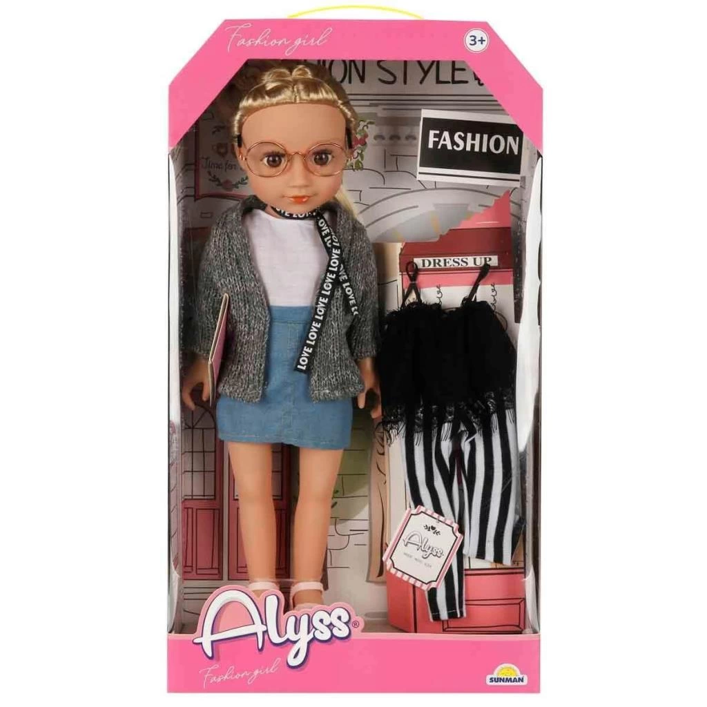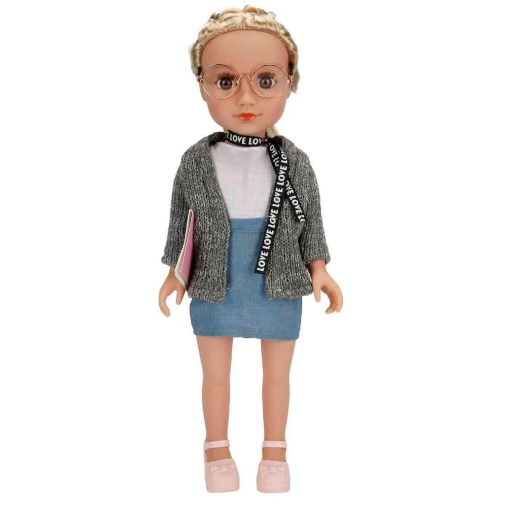 Alyss bebeği, kıyafeti mükemmel bir şekilde tamamlayan günlük kıyafeti ve modaya uygun aksesuarları ile parlıyor! Kıyafetinin her detayı zarif ve son derece şık. Kot eteği, gri hırkası, gözlüğü, örgülü saçları ile Alyss adeta modaya yön veriyor!