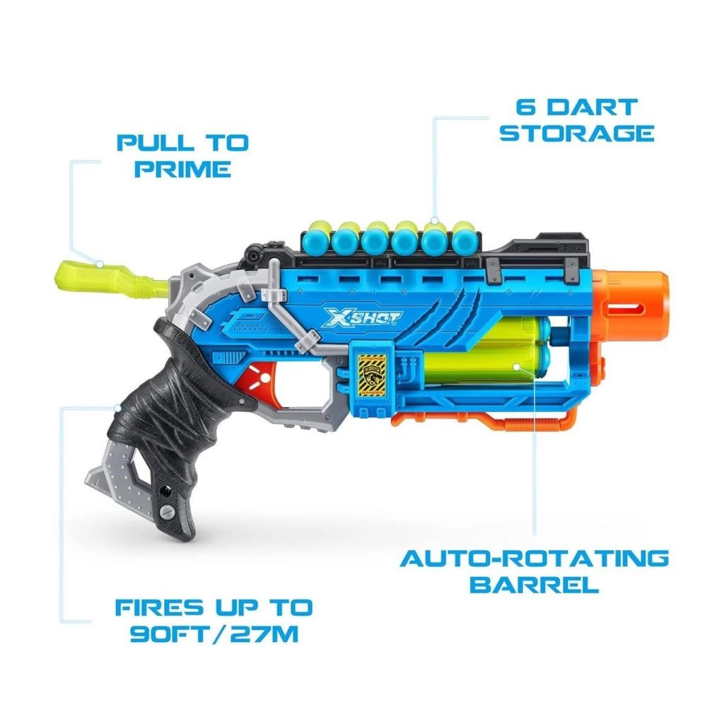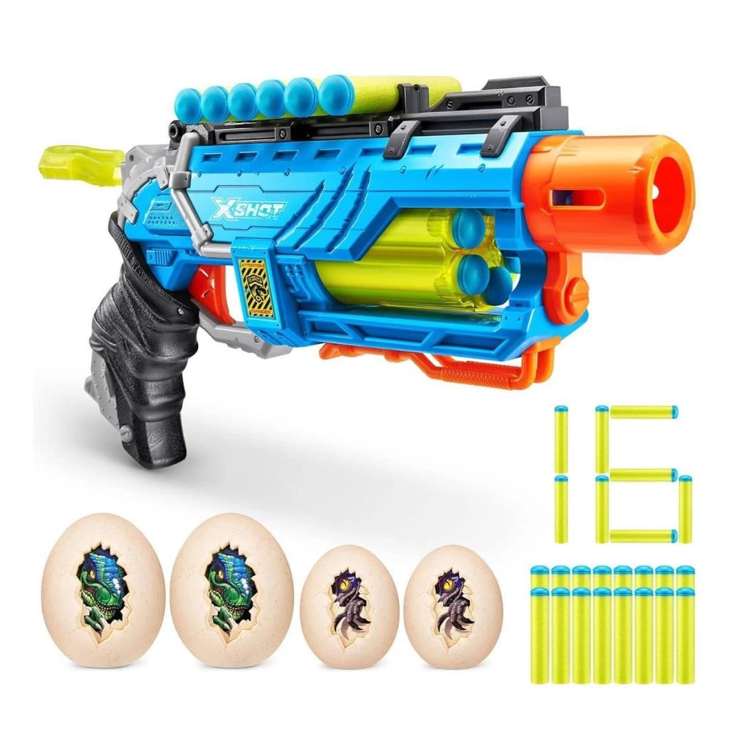 X-Shot Dino Attack Dino Striker ile vuruşa hazır olun! Dino yumurtalarını 27 m / 90 feet’e kadar uzaklıktan aşırı doğrulukla yok edin. Otomatik dönen 6 dart namlusu ve üstündeki ek 6 dart saklama alanı ile her zaman vuruşa hazır olacaksınız. Dino yumurtalarınızı hedef alıştırması için kullanın ve yumurtadan çıkmadan önce hepsini patlatın! Dino Striker ile hiçbir Dino’nun şansı yok!