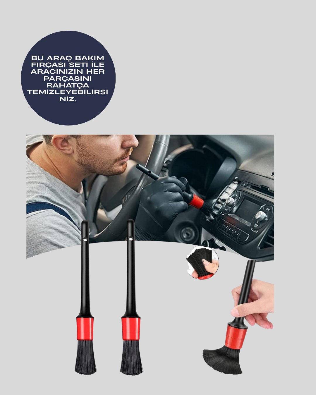 Araç bakımına özen gösterenler için tasarlanan bu temizlik fırçası seti, aracınızın hem iç hem dış bölgelerinde derinlemesine temizlik sunar. Fırçalar, sentetik lif ve doğal kıl karışımı ile üretilmiş olup dayanıklıdır ve çizilmelere karşı hassastır.Set içinde bulunan 5 farklı fırça boyutu, koltuk arası, jant, kapı eşiği, havalandırma aralıkları gibi zorlu bölgelerde etkili temizlik sağlar. Fırçaların ergonomik sap tasarımı, uzun süreli kullanımlarda bile konforlu tutuş sunar.Askı delikleri sayesinde kolay saklanabilir. 12V araçlar, SUV’lar, motosikletler ve hafif ticari araçlarla uyumlu olan bu ürün, araç içi temizlik ihtiyaçlarınızda vazgeçilmez yardımcınız olacak.