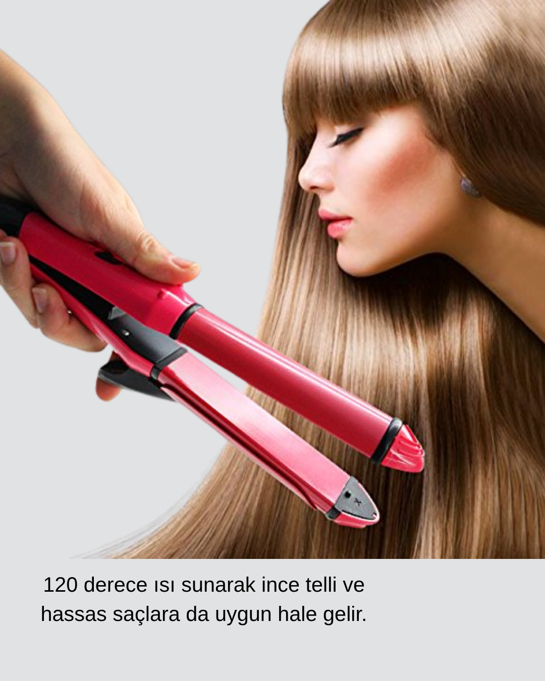 Kusursuz bir saç görünümü için profesyonel çözümler sunan bu dereceli düzleştirici, 5 farklı ısı seviyesiyle tüm saç tiplerine uygun kişiselleştirilmiş bakım sağlar. 120°C ila 200°C arasında değişen sıcaklık aralıkları, ince, kalın veya boyalı saçlarda optimum ısı dengesini sunar.Seramik kaplama plakalar, ısıyı homojen şekilde dağıtarak saçın zarar görmesini önler ve saç tellerine parlak, ipeksi bir dokunuş kazandırır.Üstelik bu ürün sadece düzleştirici değil! Çift fonksiyonlu tasarımı sayesinde düz saçtan kıvırcığa saniyeler içinde geçebilirsiniz.Alt kısmındaki kilit mekanizması, cihazı maşa veya düzleştirici moduna kolayca çevirmenizi sağlar.Renkli, şık gövdesi ve 26 mm plaka kalınlığı, profesyonel saç salonu kalitesinde sonuçlar sunar. Ergonomik sapı, hafif gövdesi ve 360° dönebilen kablosu, saç şekillendirme işlemini hem kolay hem de zahmetsiz hale getirir.Günlük kullanımda pürüzsüzlük, özel günlerde göz alıcı dalgalar istiyorsanız, bu 2’si 1 arada saç şekillendirici mükemmel tercihiniz olacak. Yüksek performanslı ısı sistemi, hızlı ısınma süresi ve güvenli kullanımıyla saçınıza zarar vermeden profesyonel sonuçlar elde edin.