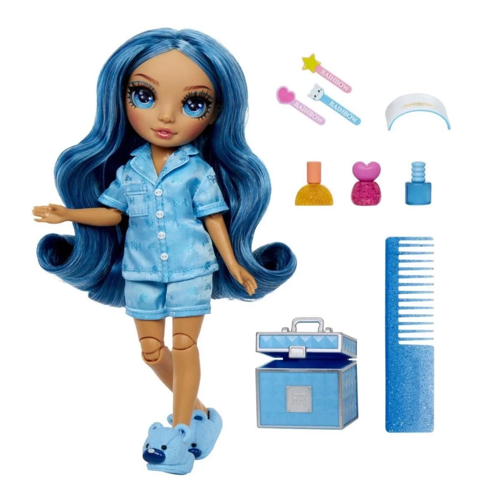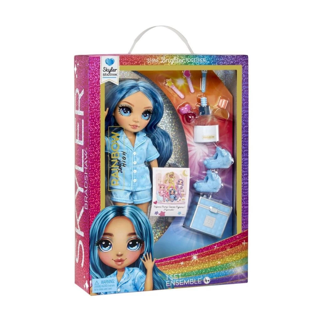 En sevdiğiniz Rainbow High Jr High bebekleri pijama partisi veriyor ! Haydi sen de onlara katıl ! Favori Rainbow High Jr High karakterlerinizden her biri en sevdiği aktiviteyi Pijama Partisine getiriyor. Özellikleri: -Kutu içerisinde 9 inç boyunda ve tamamen eklemli, kolları ve bacakları pek çok eğlenceli poz için bükülebilen bir bebek mevcuttur. -Tamamen eklemli olduğu için özelleştirmesi kolaydır ve oynaması eğlencelidir. -Her 9 inçlik moda bebeği, kendi renkli pijamaları, terlikleri ve mükemmel pijama partisi aksesuarlarıyla birlikte gelir. -Bu oyun seti çocuklara sonsuz eğlence ve yaratıcılık sunar. Hepsini biriktir : Skyler () ve Violet pijama partisinde! İpucu – Saç şekillendirici jeli çıkarmak için saçı yıkayın : Bebeği kutusundan ilk çıkardığınızda, şekillendirme jelini çıkarmak için saçını iyice yıkayın ve saçın tamamen kurumasını bekleyin. Daha sonra saçları fırçalanmaya hazır hale gelir.
