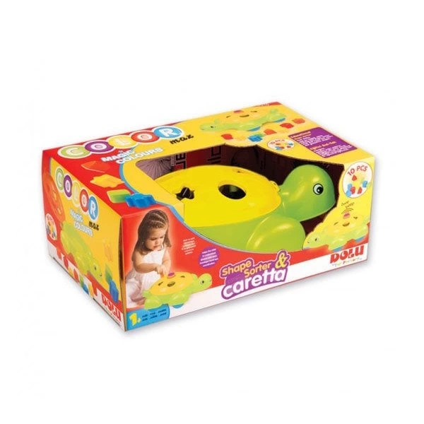 12 AY VE ÜZERİ ÇOCUKLAR İÇİN UYGUNDUR. 13,5X39X25,5 CM. ÖLÇÜLERİNDEDİR. KAPLUMBAĞANIN  ÜZERİNDE 5 FARKLI GEOMETRİK ŞEKİL VARDIR. 5 ADET FARKLI RENKLERDE GEOMETRİK BLOK İÇİNDEDİR. TEKERLEKLİDİR. ÇOCUKLARIN ZEKA GELİŞİMİNİ DESTEKLER.