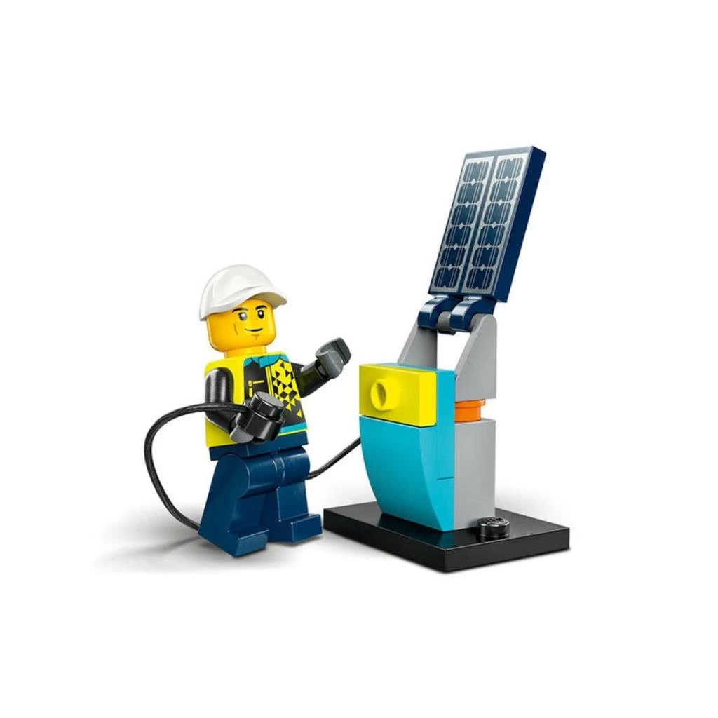 • Yaratıcı oyunlar için eğlenceli fonksiyonlar – Çocuklar kokpiti açarak sürücü minifigürünü oturtabilir, oyuncak şarj noktasındaki güneş panellerini ayarlayabilir ve kablosunu arabaya bağlayabilir