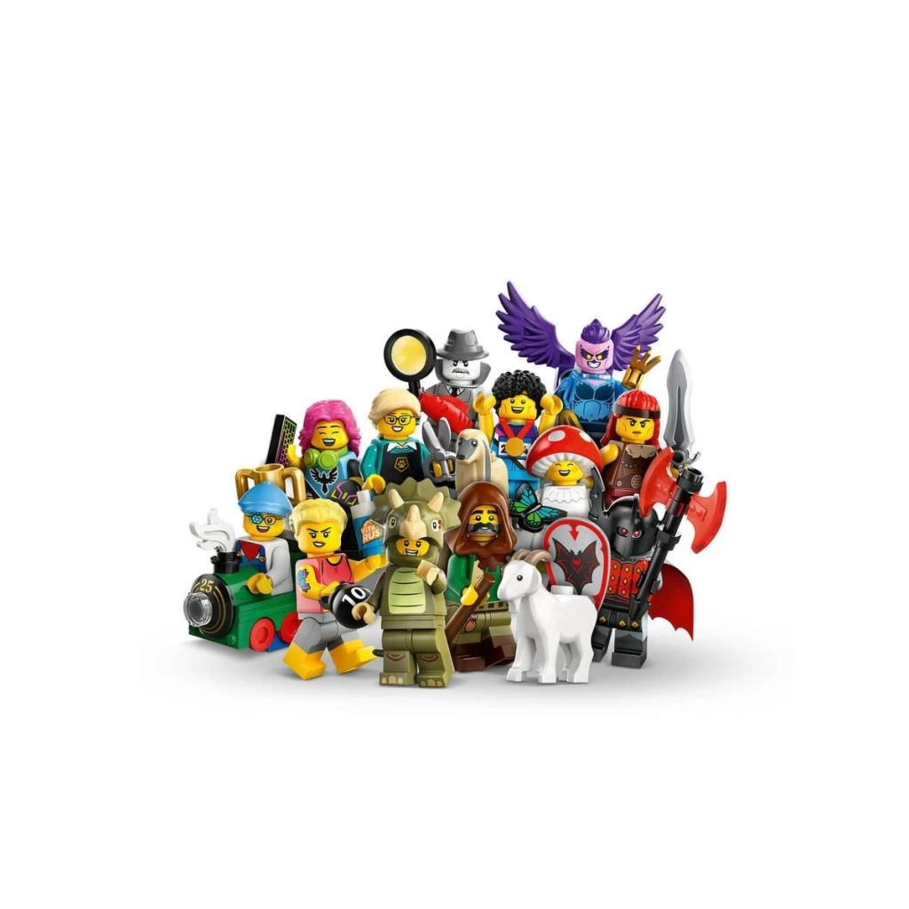 Her kutuda 1 sürpriz minifigürü bulunur ve koleksiyonda toplam 12 karakter vardır: Triceratops Kostümlü Hayran, Koşucu, Kara Film Dedektifi, Trenci Çocuk, Çoban, Vampir Şövalye, Evcil Hayvan Kuaförü, Fitness Eğitmeni, E-Spor Oyuncusu, Mantar Perisi, Öfkeli Barbar ve Harpia.