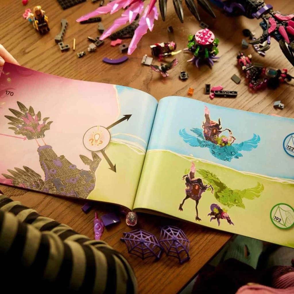 Genç düşçüler, kötü Never Cadısı’nın kuzgununu inşa ederken eğlendikten sonra bir kuzgun kulübeye veya yürüyen ev, kazan örümceği ve dev kuzgun olmak üzere 3 kabus yaratığına dönüştürebilir! Oyuncak evin çatısı ve kapısı açılır, oyuncak örümceğin kafesi ve bacakları hareket eder, oyuncak kuzgunun kanatları ve tüyleri ayarlanabilir.