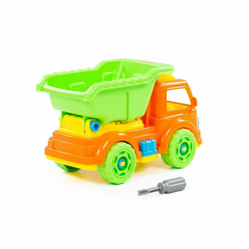Damperli kamyonun tüm elemanları, plastik vidalarla bağlanan bir yapıcı şeklinde sunulur.