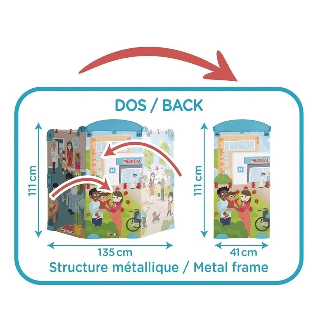 Tıp dünyasıyla ilgili birçok fonksiyonu bulabilecekler: Radyoloji köşesi, vücut kısımlarını tanıma, beslenme bölümü, göz çizelgesi, yaralanma saati, büyüme tablosu, 1,20 m’ye kadar kareli boy çubuğu, kukla banyo baskülü, saat. bir istişarenin ilerleyişini açıklamak ve çok daha fazlası …
