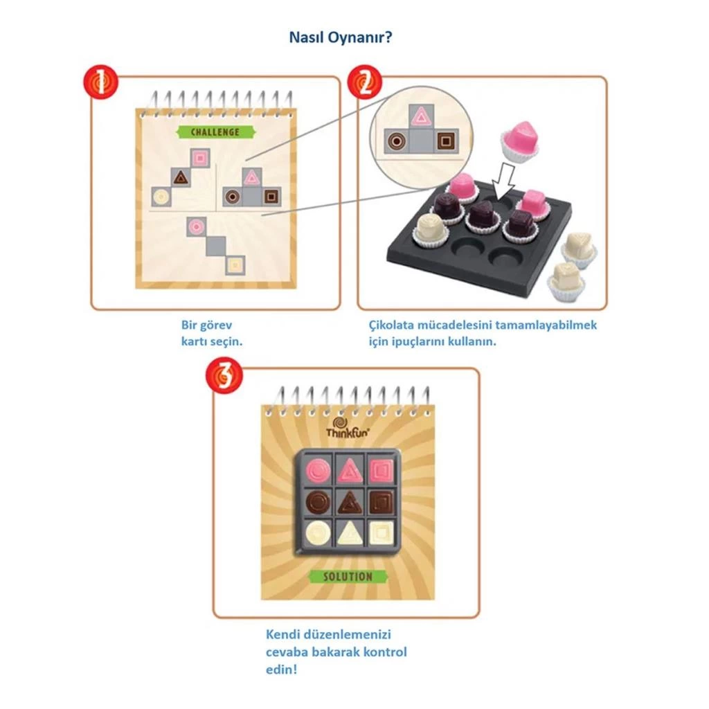 İpuçlarını kullanarak tepsiye dokuz çikolata parçasının tamamını doğru konumlarına yerleştirin.
