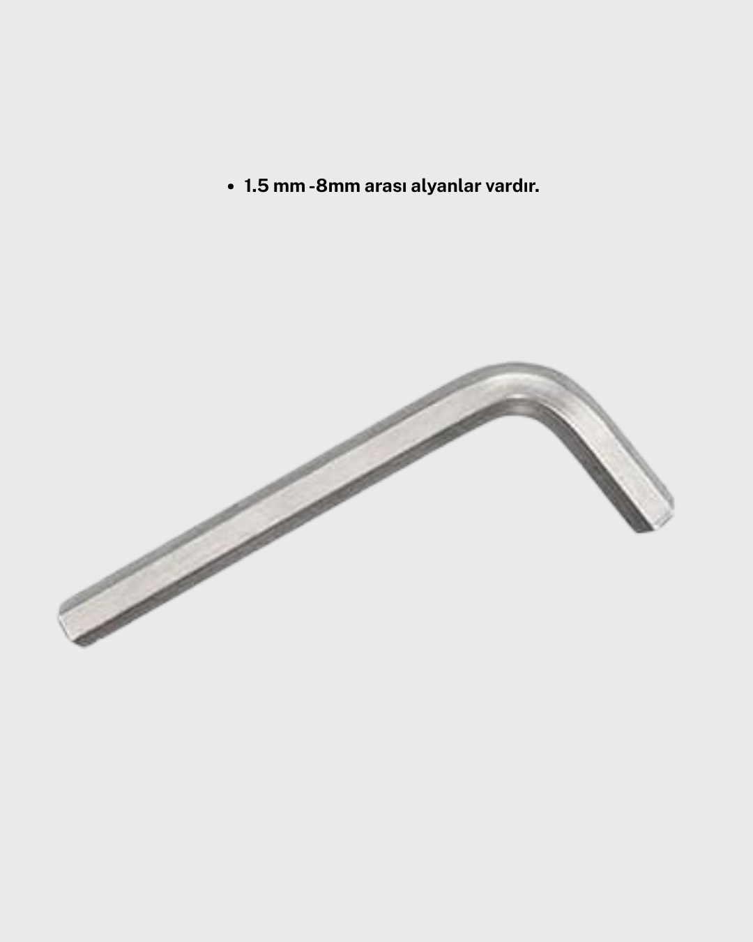 9 Parça Alyan Anahtar Seti, bisiklet, mobilya ve otomotiv gibi birçok alanda kullanılan altıgen vidalar için ideal bir çözümdür. Farklı metrik ölçülerden oluşan bu set, tek bir pakette çok yönlü kullanım imkânı sunar. Özellikle bisiklet ve scooter bakımında; gidon, fren, sele, pedal gibi noktaların ayarlanmasında sıkça ihtiyaç duyulan alyan anahtarları, bu setle her zaman elinizin altında bulabilirsiniz.Isıl işlem görmüş yüksek kaliteli çelikten üretilen alyanlar, yoğun kullanımlarda bile formunu koruyan dayanıklı bir yapıya sahiptir. Sertleştirilmiş gövde, yüksek tork uygulandığında dahi eğilme veya kırılma riskini minimuma indirir. Uç kısımların hassas işlenmiş altıgen yapısı, vida yuvasına tam oturur ve sıyırma riskini azaltır. Böylece hem vidalar hem de alyan anahtarlar zarar görmeden güvenli bir kullanım sunar.L şeklindeki tasarım, kullanıcıya hem güç hem de hassasiyet kazandırır. Uzun kol, sıkı vidaları söküp takmak için daha yüksek kuvvet uygulamaya yardımcı olurken, kısa kol dar bölgelerde kontrolü artırır. Bu sayede zor noktalarda bile pratik bir şekilde çalışma mümkündür.Set; mobilya montajı, ofis ve ev eşyalarının kurulumu, tamir işleri, makine montajları, elektrik ve tesisat uygulamaları gibi birçok alanda kullanılabilir. Otomotiv sektöründe de motor kaputu altındaki bağlantı parçaları, iç trim parçaları ve aksesuar montajlarında sıklıkla tercih edilir.Plastik taşıma aparatı, tüm alyanları düzenli şekilde bir arada tutar. Her anahtar kolayca çıkarılıp takılabilir ve kompakt yapısı sayesinde alet çantasına, araç bagajına veya atölye rafına rahatlıkla yerleştirilebilir. Askı deliği sayesinde ürün, duvarda veya panoda da saklanabilir.Bisikletçiler, tamirciler, montaj ustaları ve ev kullanıcıları için ideal olan 9 Parça Alyan Anahtar Seti, çok yönlü yapısı ve dayanıklı malzemesiyle uzun yıllar boyunca güvenle kullanabileceğiniz profesyonel bir el aletidir.