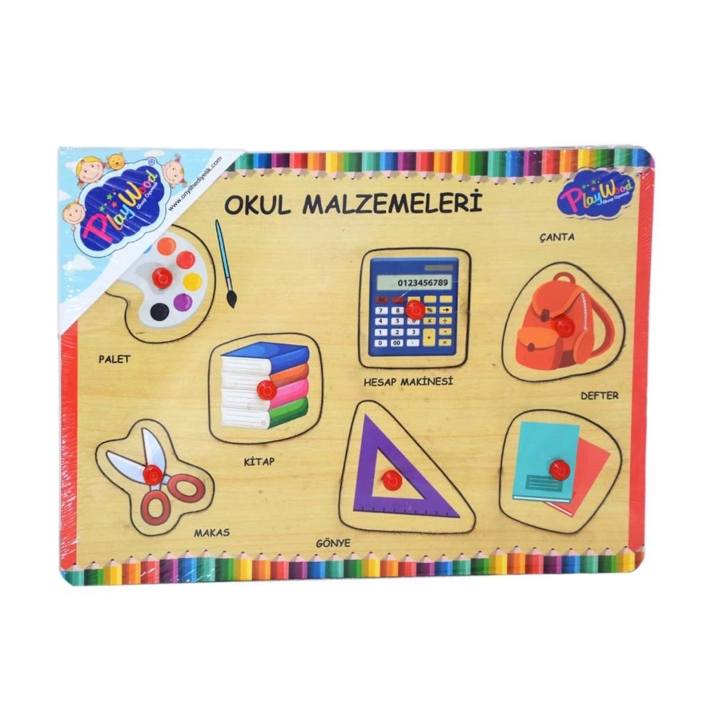 Ahşap Tutmalı Okul Malzemeleri Puzzle