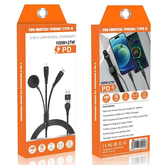 Ally 2x Type-c 100W-27W + Apple Watch İçin Type-c Şarj Kablosu-(5775)