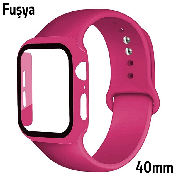 ALLY Apple Watch 4-5-6 40mm Silikon Kordon Kayış ve Ekran Koruyucu Kılıf