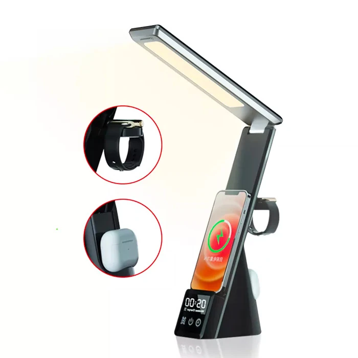 ALLY Dijital Saatli 15W Kablosuz Şarjlı LED Işıklı Katlanabilir Masa Lambası