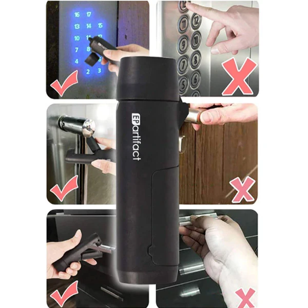 Anti-temas kapı açacağı asansör, kapı kolu, çekmece kolu ve diğer halka açık yerlerde güvenle kullanılabilir