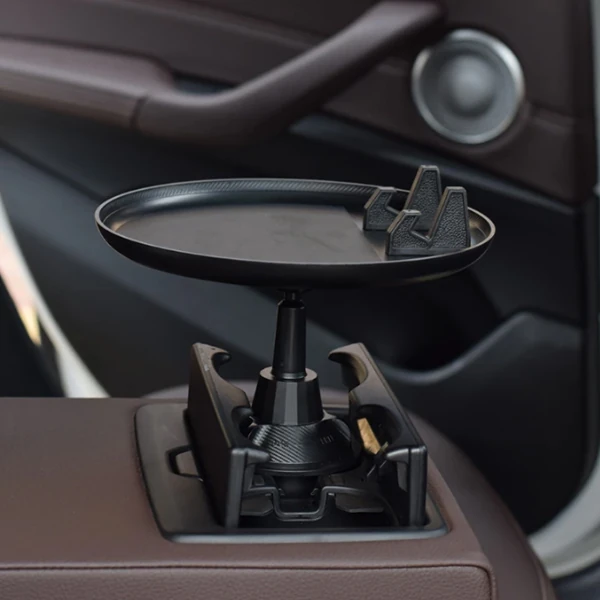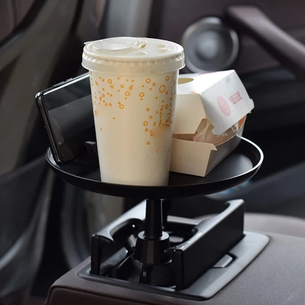 Araç yemek masasının yanı sıra aynı zamanda 360° dönebilen araç tutucu olarak da kullanılabilir.