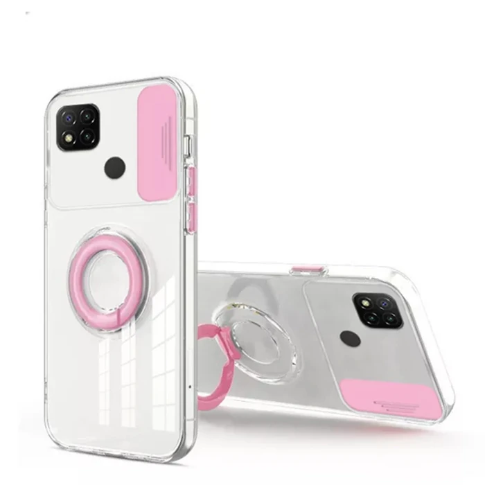 ALLY Xiaomi Redmi 9C Kılıf Sürgülü Kamera Lens Korumalı Yüzük Standlı Silikon Kılıf