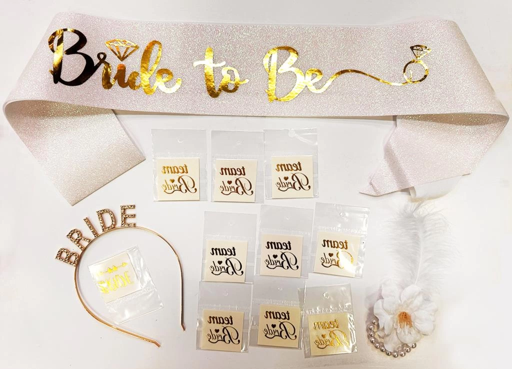 Harika bir gelin partisi için ihtiyacınız olan her şey bu sette! Parlak altın rengi ile göz kamaştıran bu set, partiye katılan herkesi büyüleyecek.