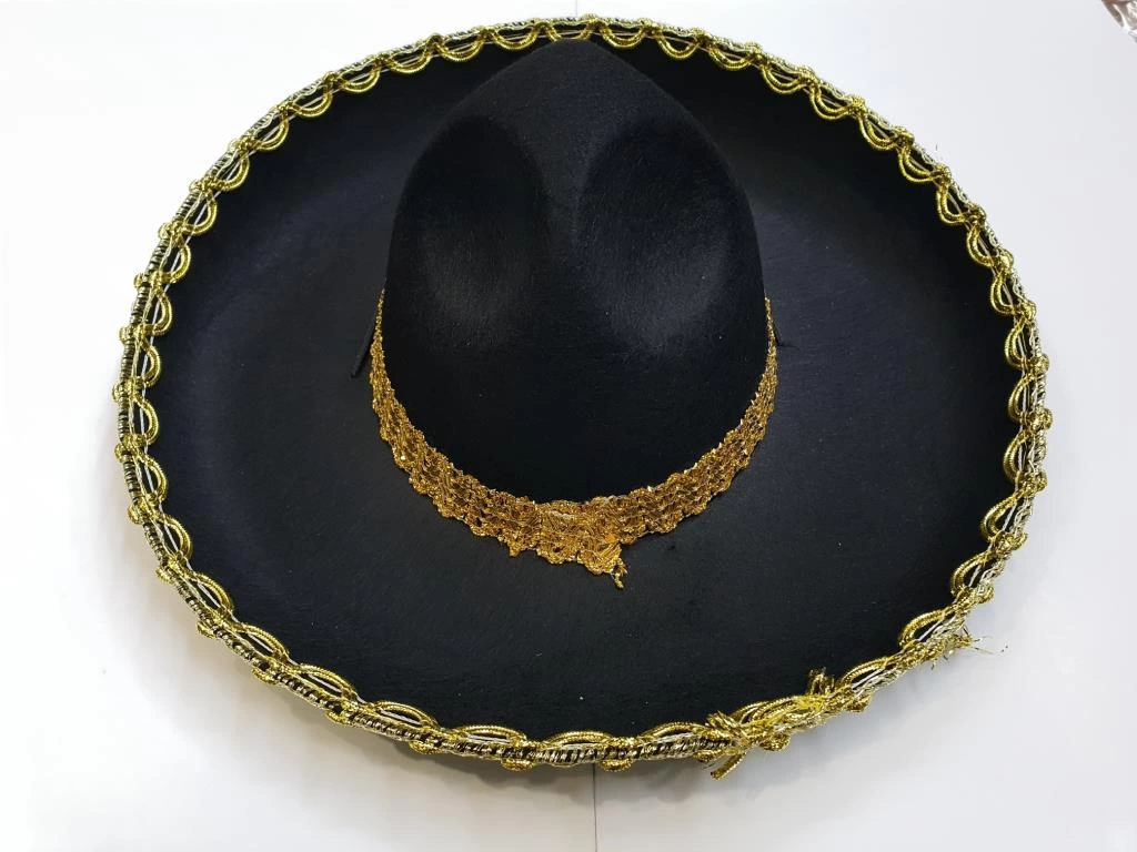 Altın Renk Şeritli Meksika Mariachi Latin Şapkası 55 cm Çocuk Kostüm Aksesuarı
