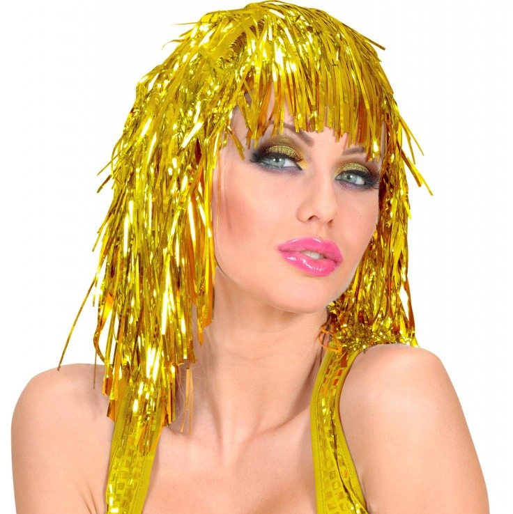 Altın Sarısı Işıltılı Metalize Parti Peruğu