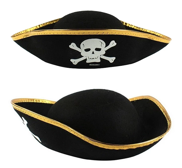 Altın Şeritli Siyah Renk Yayvan Korsan Şapkası