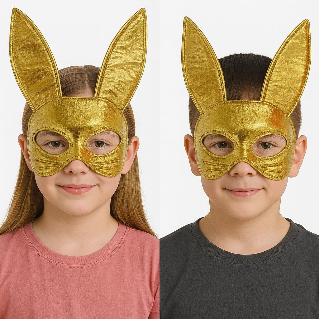 Altın Renk Kumaş Malzemeden İmal Tavşan Maskesi 25X17 cm