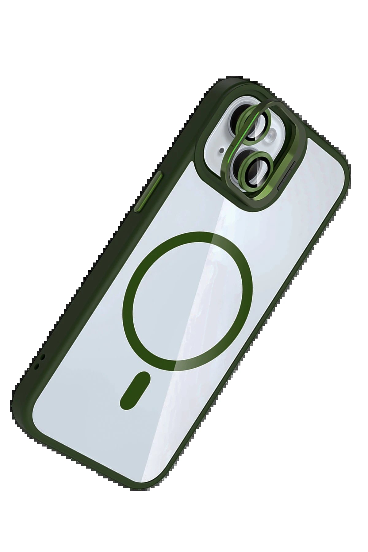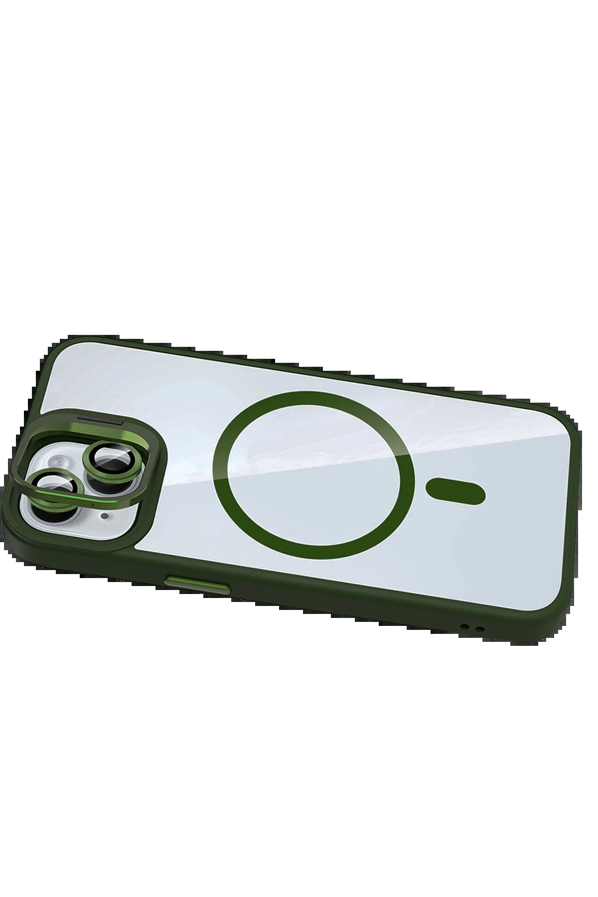 Apple iPhone 14 Remim Lensli Magsafe Standlı Kapak – Koyu Yeşil-(5796)