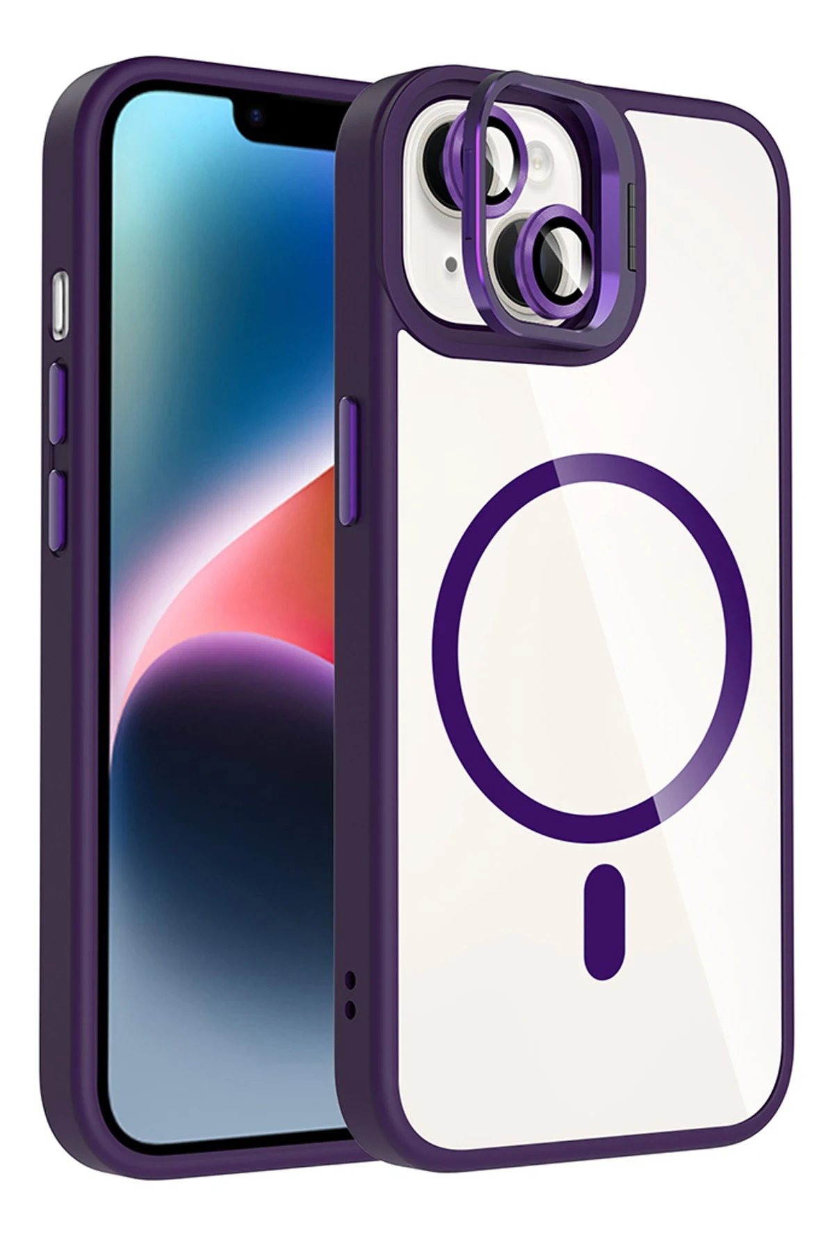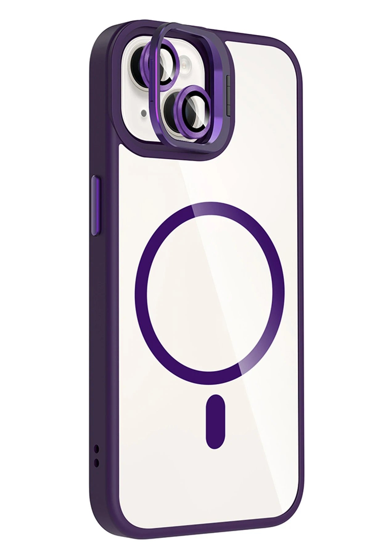 Apple iPhone 15 Plus Remim Lensli Magsafe Standlı Kapak – Derin Mor-(5796)