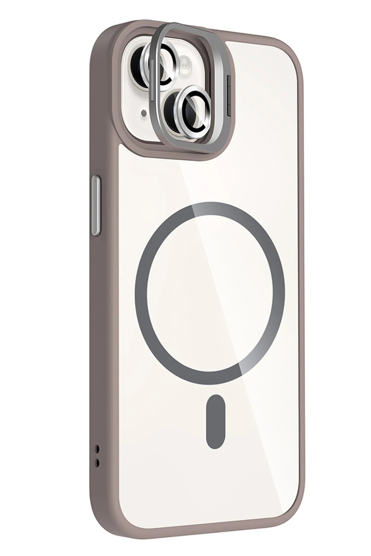 Apple iPhone 15 Plus Remim Lensli Magsafe Standlı Kapak – Titan Gri-(5796)