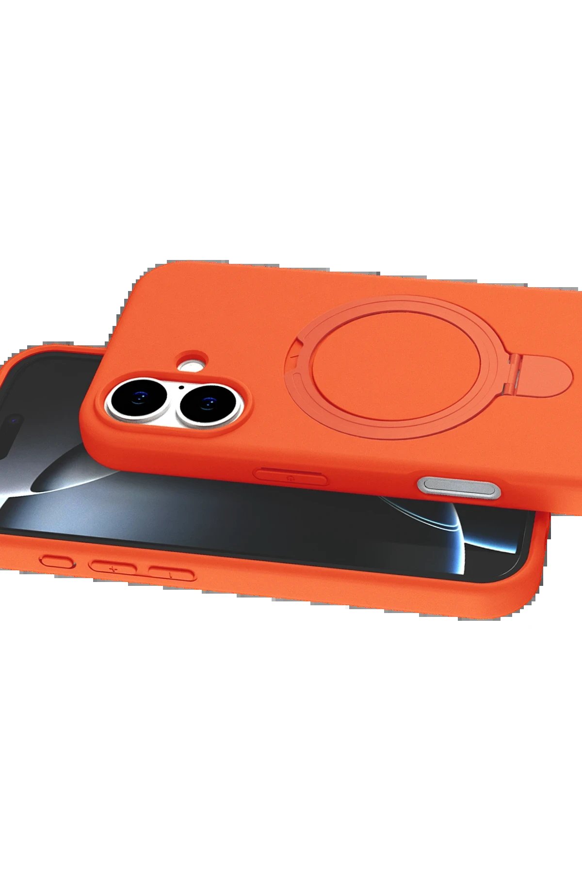 Apple iPhone 16 Plus Regal Magsafe Standlı Kapak – Turuncu-(5796)