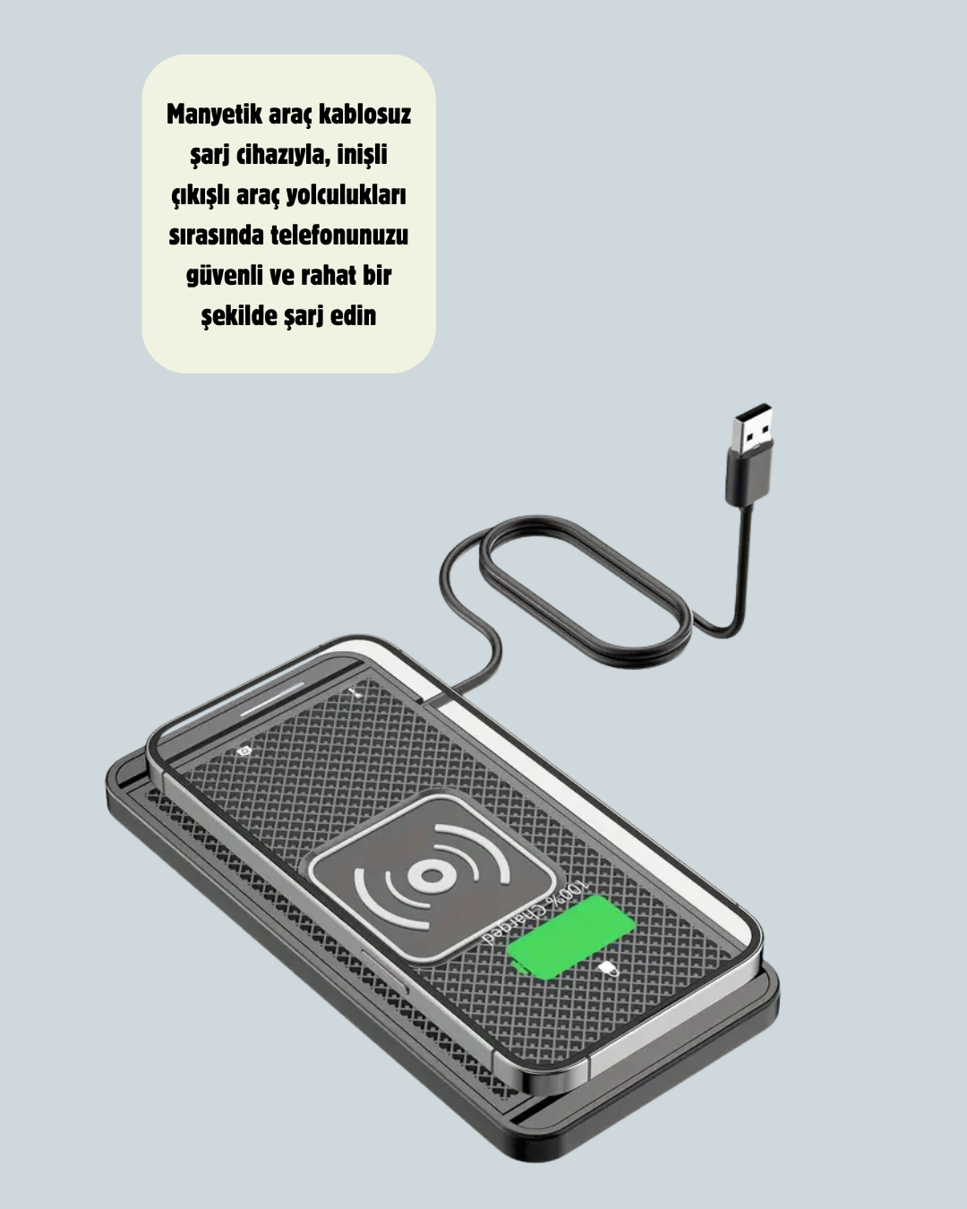 Kabloyla uğraşmadan hızlı şarj artık çok kolay! Bu araç içi kablosuz şarj pedi, güçlü mıknatısları ve yüksek tutuş gücü sayesinde sürüş sırasında bile telefonunuzu sabit tutar.Yol titreşimlerine ve sarsıntılara karşı dayanıklı yapısı, güvenli bir kullanım sağlar. Yükseltilmiş manyetik pad, cihazınızın yüzeye zarar vermeden sabitlenmesini sağlar.Akıllı sıcaklık koruma sistemi, ısıyı eşit dağıtarak aşırı ısınmayı önler. Devre kartı ayrılmış özel iç tasarımı, şarjın verimli ve kararlı olmasını sağlar.Çift taraflı çıkartma ve kaymaz taban, cihazın her yüzeye sağlamca yerleşmesini kolaylaştırır. Bu sayede aracınızın orta konsoluna, ofis masasına veya komodin üzerine rahatça monte edilebilir.Qi kablosuz şarj destekli tüm cihazlarla uyumlu çalışır. iPhone, Samsung, Xiaomi, Huawei, Oppo gibi markalarla %100 uyumluluk sağlar.Basit tasarımı sayesinde minimalist bir görünüm sunar. Sadece arabada değil; alışveriş merkezlerinde, konferanslarda veya seyahatlerde de kullanılabilir.Enerji verimli şarj sistemiyle telefonunuzu güvenli bir şekilde şarj ederken pil ömrünü korur. Hem işlevsel hem estetik bu cihaz, modern yaşamın en pratik şarj çözümüdür.