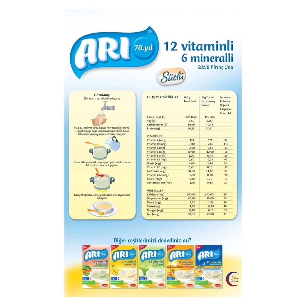 Arı 12 Vitaminli 6 Mineralli Sütlü Pirinç Unu 500 gr Özellikleri;