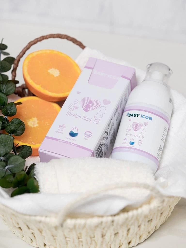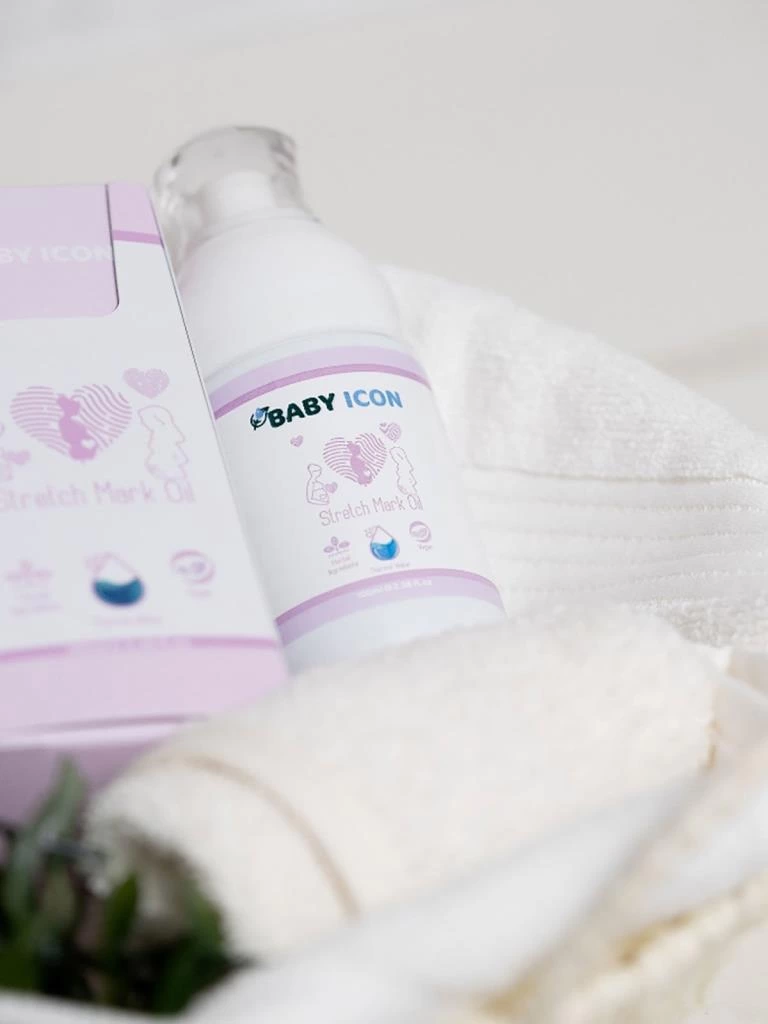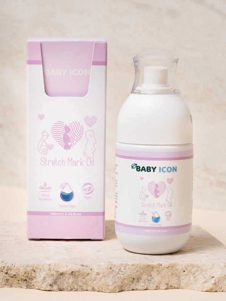 Baby icon çatlak yağı cilt esnekliğini artırmak çatlakların oluşmasını ve görünümünü azaltmak için hamilelik boyunca kullanılır.