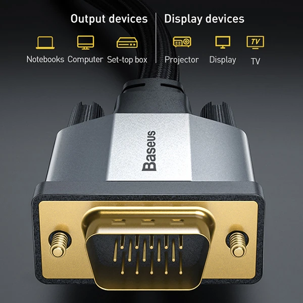 Baseus Enjoyment 1080P VGA To VGA Kablo Monitör Projeksiyon Kablosu 2Metre