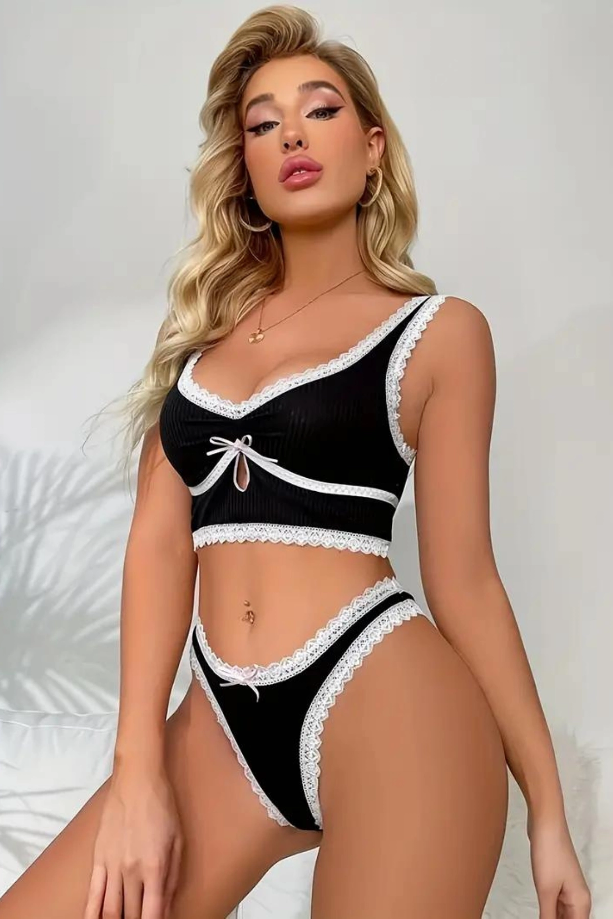 Beyaz Dantelli Siyah Sütyen Külot Takım PR16045