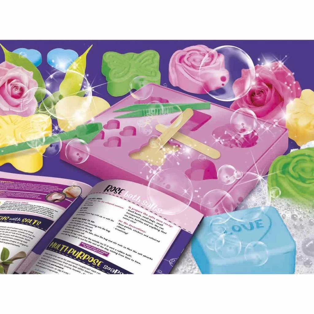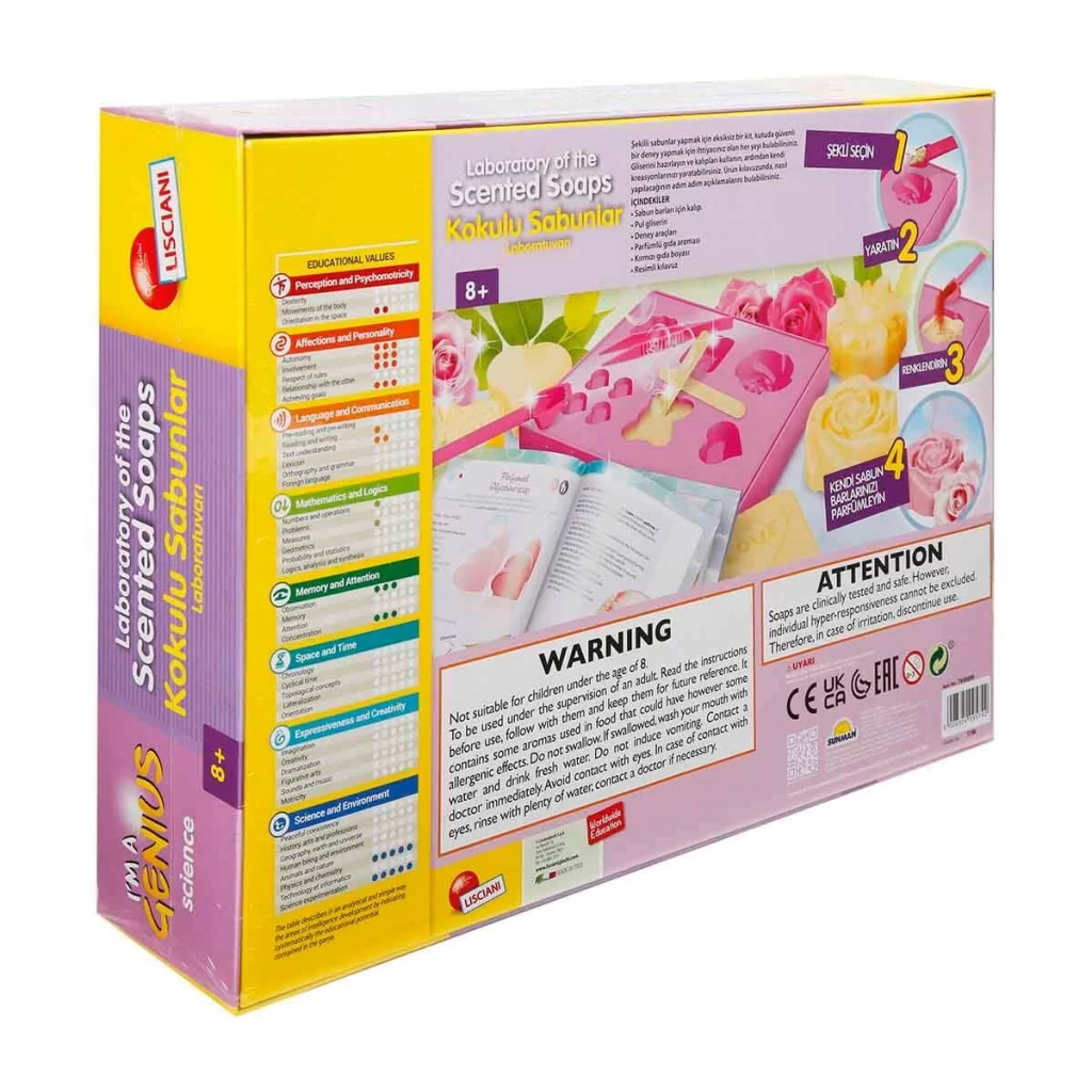 Set içerisinde; içindekiler: sabun barları için kalıp, pul gliserin, deney araçları, parfümlü gıda aroması, kırmızı gıda boyası, resimli kılavuz bulunmaktadır.