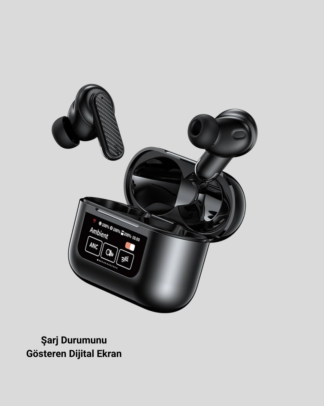 Yenilikçi teknolojiyi estetik tasarımla buluşturan bu Bluetooth 5.3 ANC kulaklık, kesintisiz müzik keyfi için tasarlandı. Gelişmiş Aktif Gürültü Engelleme (ANC) sistemi, dış ortam seslerini engelleyerek tamamen müziğe veya aramalara odaklanmanı sağlar. Özellikle kalabalık, gürültülü ortamlarda bile net ses deneyimi sunar.Şarj kutusundaki dijital ekran, pil durumunu ve bağlantı seviyesini gösterir. Bu sayede kulaklığını ne zaman şarj etmen gerektiğini anlık olarak takip edebilirsin. Uzun ömürlü bataryasıyla tek şarjda saatlerce müzik dinleyebilir, şarj kutusuyla birlikte toplamda gün boyu kullanım imkânı elde edersin.Dokunmatik kontrol paneli, kullanım kolaylığı sunar. Sadece parmak ucunla müziği durdurabilir, aramayı cevaplayabilir veya şarkı geçişi yapabilirsin. Kablolardan kurtul, hareket özgürlüğünün tadını çıkar!Yüksek çözünürlüklü sürücüler, güçlü bas ve net tiz performansıyla her tür müziği canlı bir şekilde dinlemeni sağlar. Ergonomik tasarımı, uzun süreli kullanımlarda bile kulak içinde rahatsızlık oluşturmaz.Hem iş görüşmelerinde hem spor sırasında hem de seyahatlerde mükemmel bir yardımcı olan bu kulaklık, modern yaşam tarzına en uygun teknolojik aksesuardır. Müzik, konfor ve zarafet artık seninle!