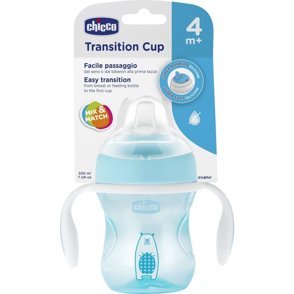 Chicco Yumuşak Uçlu Geçiş Bardağı 4+ Ay Erkek 200 ml Özellikleri;
