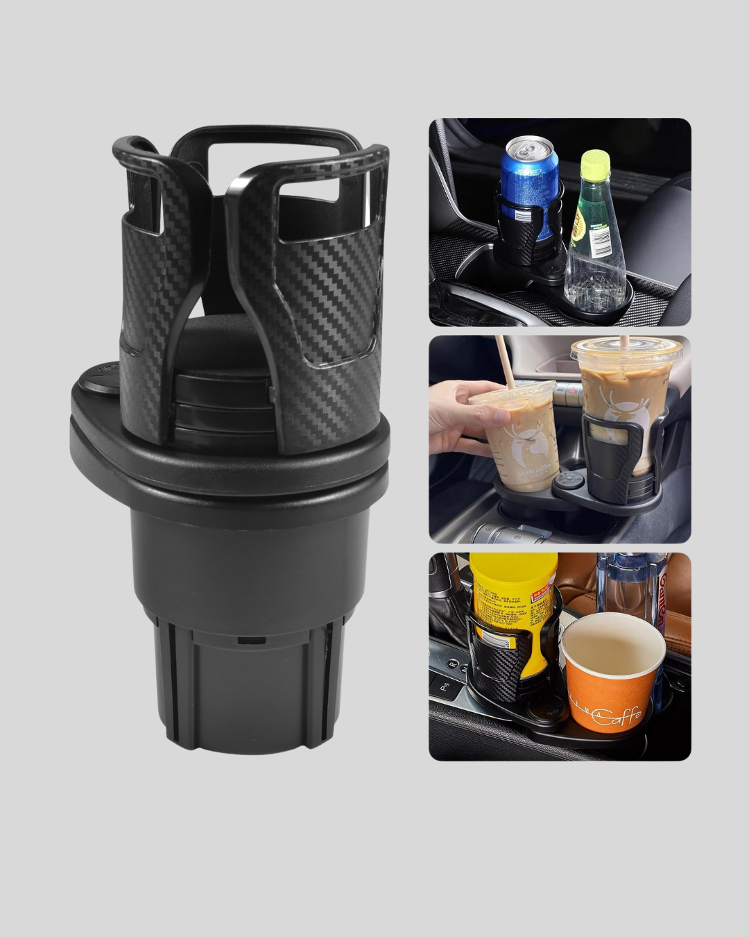 Otomobil içi kullanım için özel olarak tasarlanmış 360° döner çift bardak tutucu, hem yer kazandırır hem de konfor sağlar. Tek bardak yuvasını ikiye bölerek aynı anda iki içecek taşımanıza imkân tanır. Ayarlanabilir genişlik yapısı, hem küçük şişelere hem de büyük boy termos ve kupalara uyum sağlar. Gövdesi kalınlaştırılmış sert plastikten üretilmiştir ve karbon fiber görünümüyle premium bir hava katar. Yüksek sıcaklıklara dayanıklı yapısı sayesinde yaz aylarında dahi deforme olmaz. Kaymaz ve su geçirmez yüzeyi kolayca temizlenebilir. Telefon, anahtar veya küçük eşyaları koymanız için ek kullanım alanı sunar. Uzun yol sürücülerinden şehir içi kullanıcılarına kadar herkes için işlevsel ve modern bir araç aksesuarıdır.
