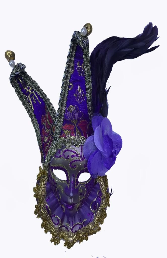 Çıngıraklı Dekoratif Tüylü Seramik Maske Mor Renk