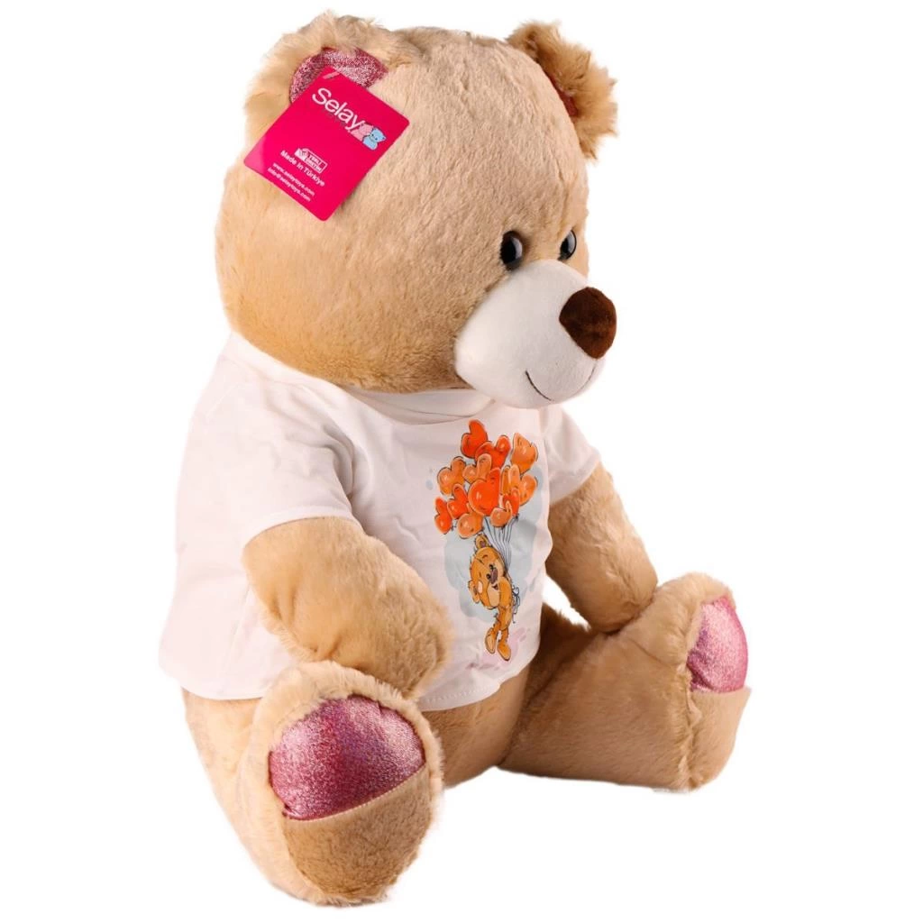 Çocuk 1695 Baskılı Tshirtlü Ayı 46 cm Kahverengi -Selay Oyuncak