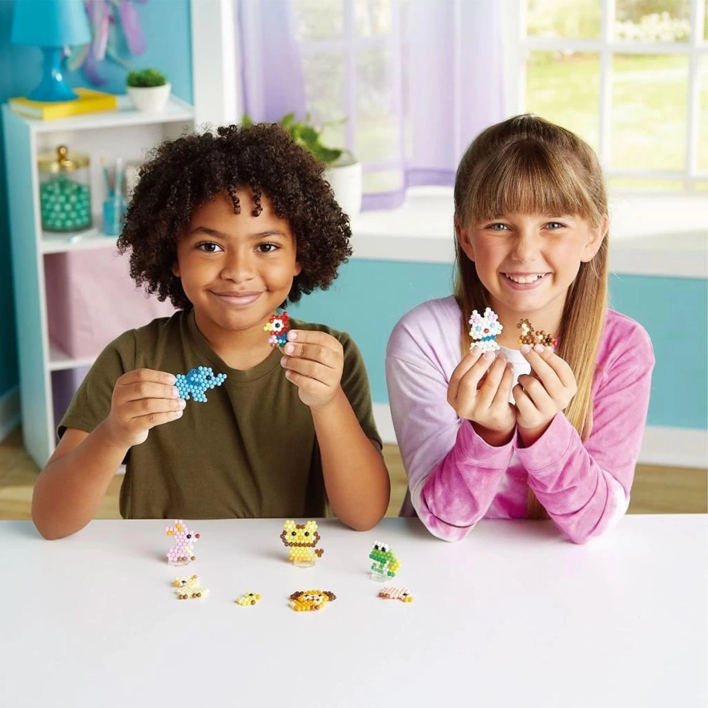 Aquabeads Hayvan Dostlar Seti ile birbirinden sevimli hayvanlar tasarla! 600’den fazla boncuk, tasarım kartları ve tablaları ile gelir.