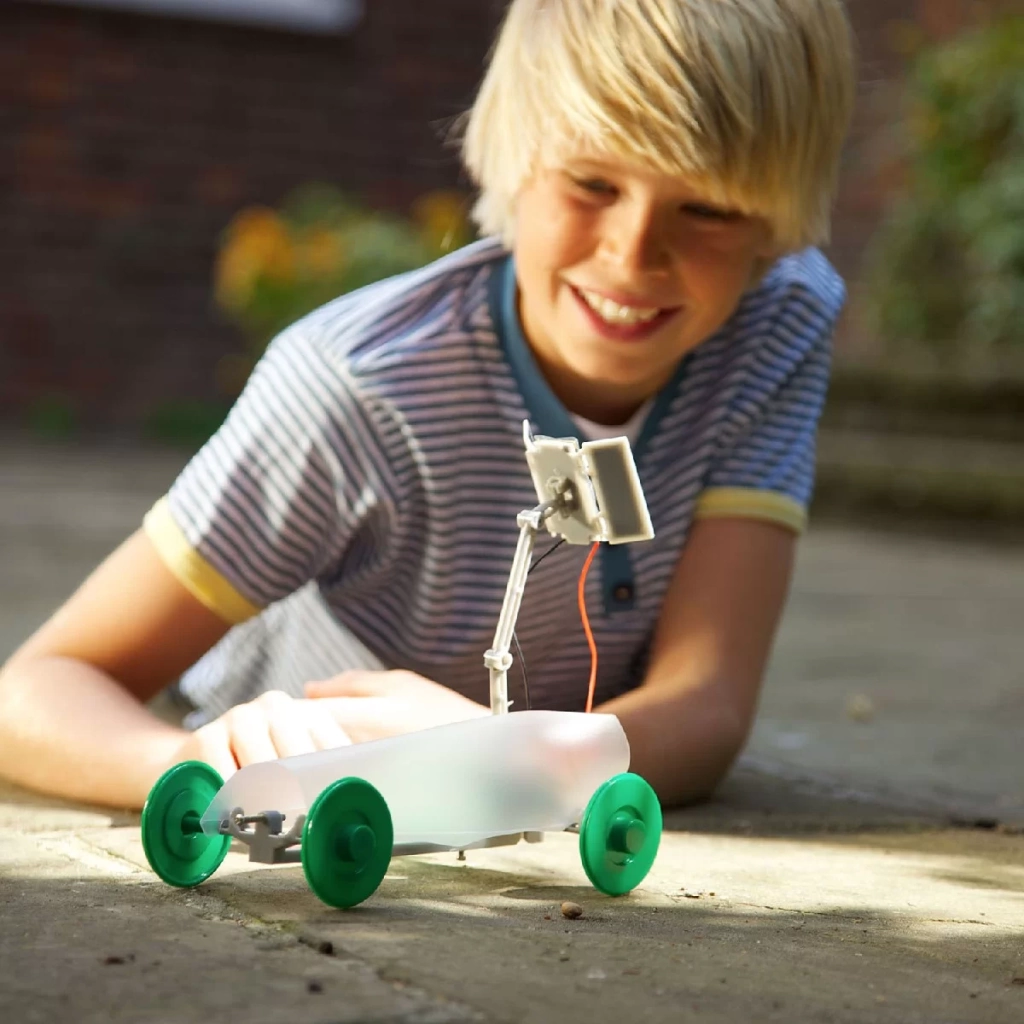 bir zemine koyun, arabanın üzerindeki panel sayesinde güneş enerjisi elektriğe dönüşecektir ve Solar Gezgin’in