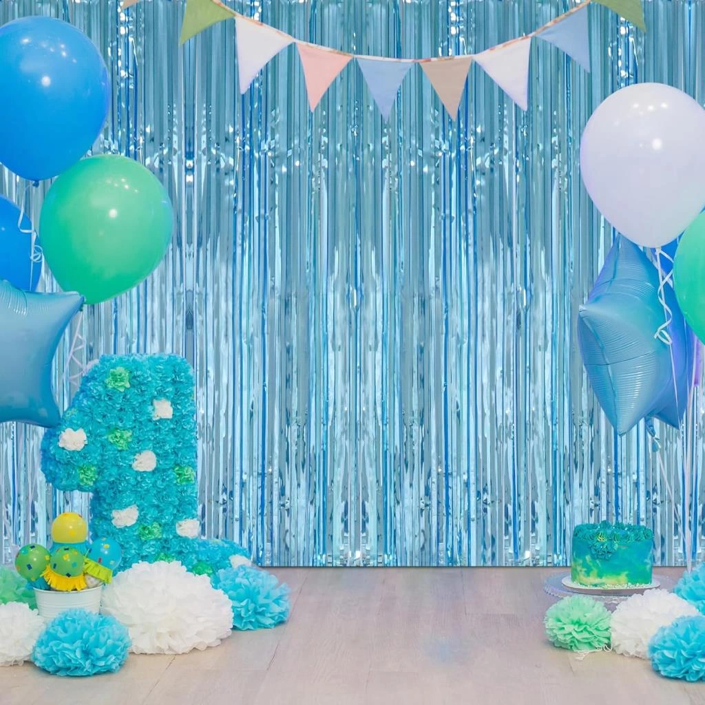 Açık Mavi renk ekstra metalize parlak saçaklı arka fon perdesi ile özel günlerinize ve kutlamalarınıza göz kamaştırıcı bir ışıltı katın! İthal A kalite malzemeden üretilen bu perde, 1×2 metre boyutuyla her türlü dekorasyona uyum sağlar.
